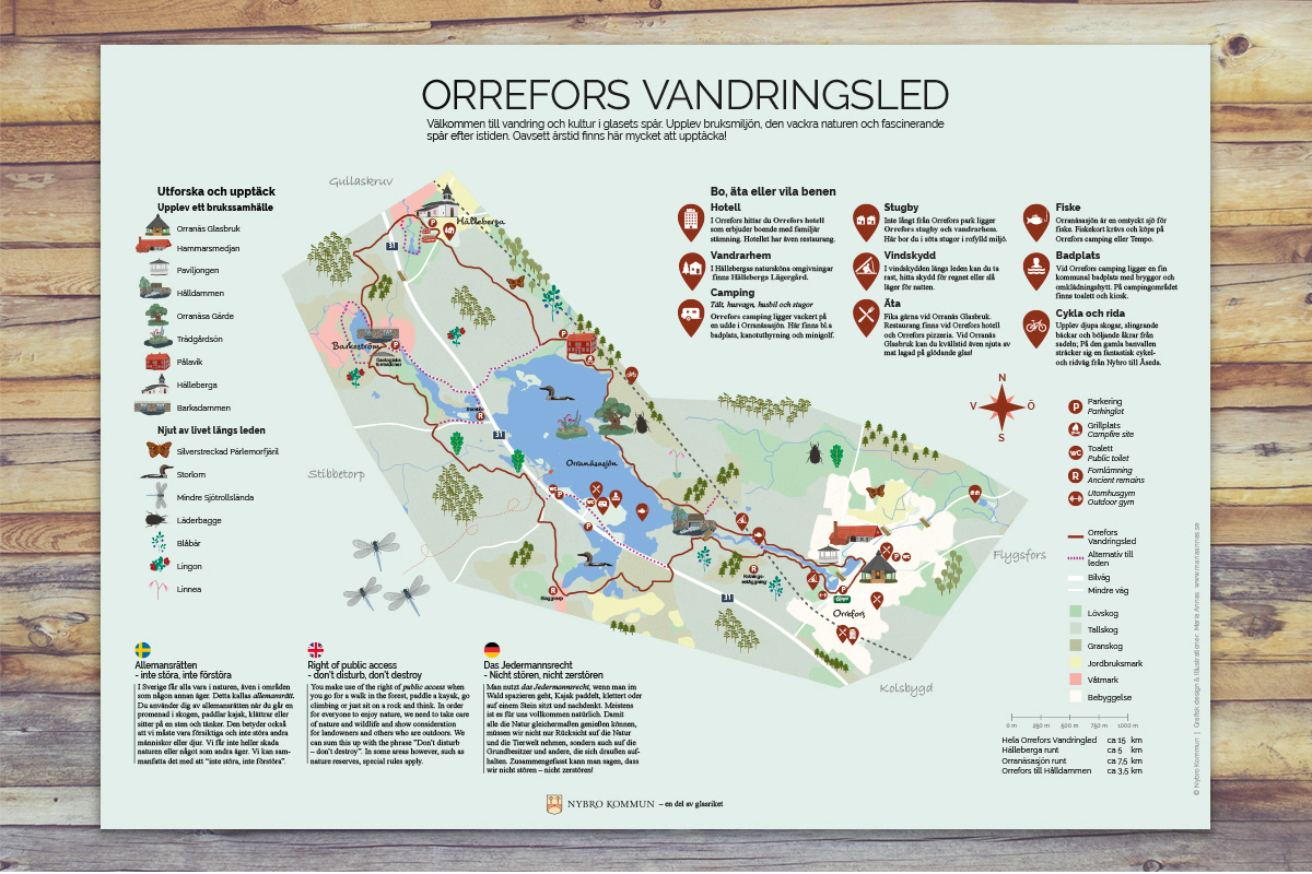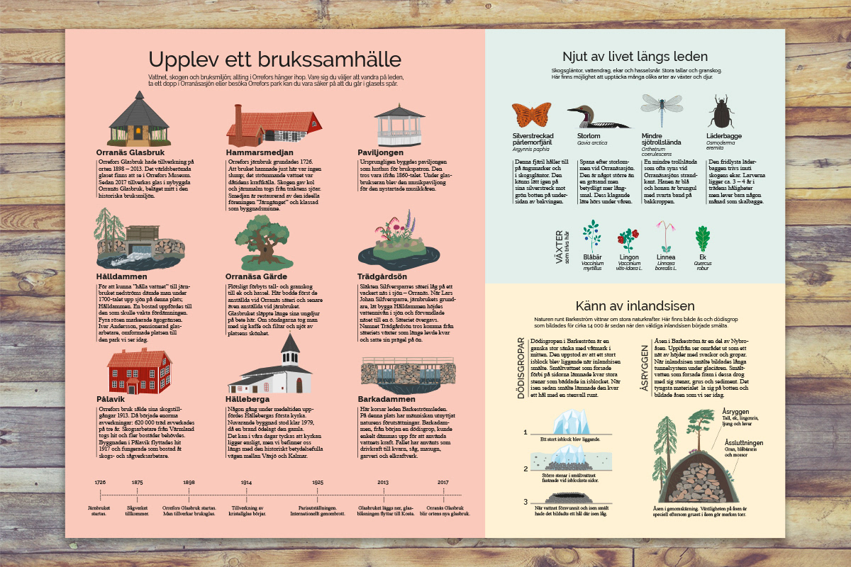 Informationstavlor samt folder till Orrefors Vandringsled i Glasriket
